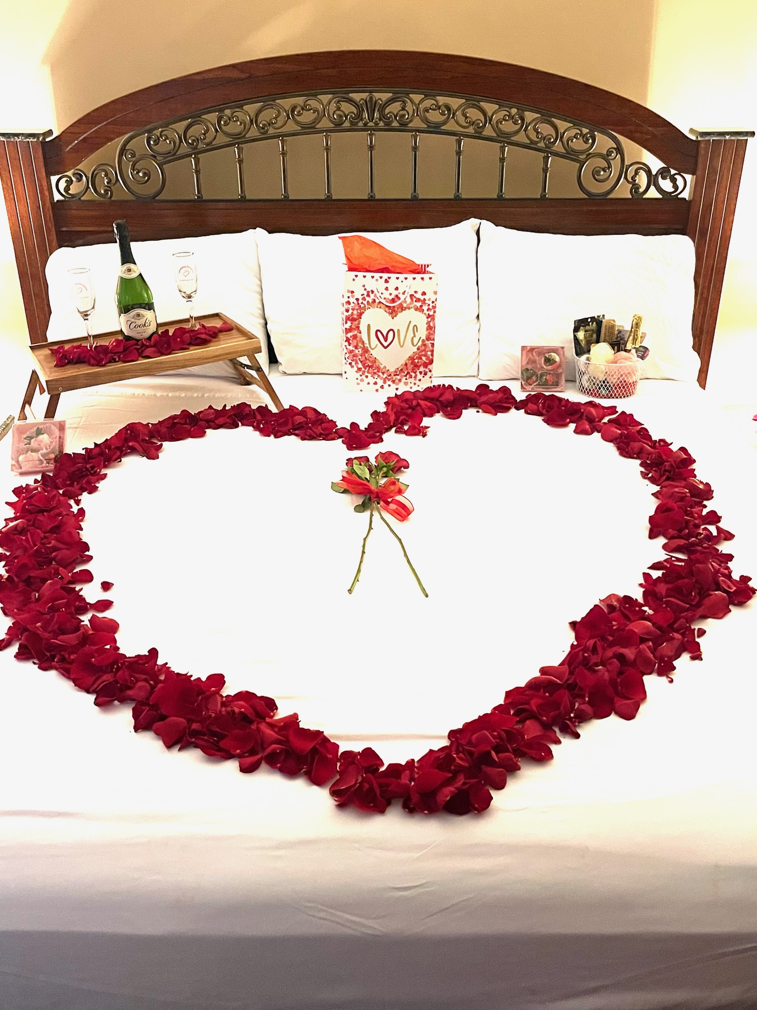 🌹 “Bed of Roses” heart-shaped rose petal amenity