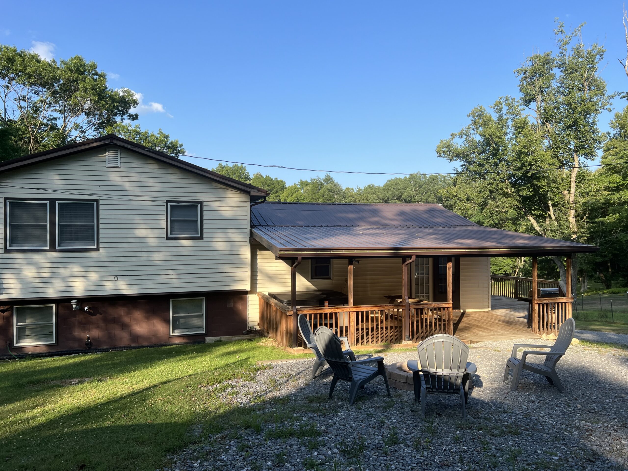 Vandalia Retreat is a spacious 3 bedroom 2 bath split level home situated on 10 acres of wooded privacy. This spacious retreat sleeps up to 10 guests and is perfect for a family reunion, girls getaway, or multi-family vacation. It's expansive yard bordered by the forest make it perfect for large outdoor gatherings!